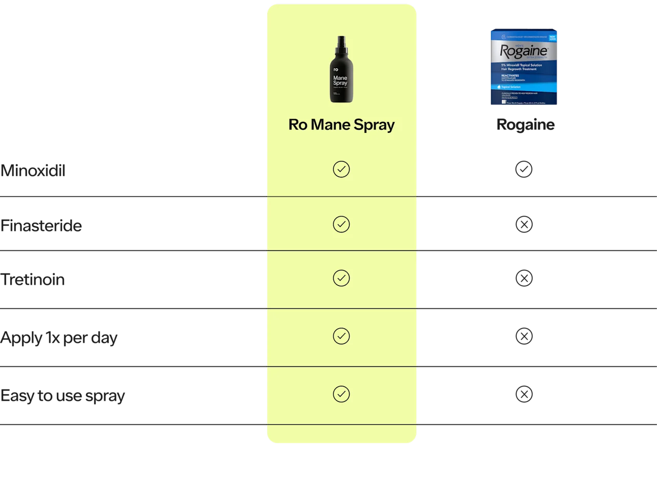 Ro Mane Spray is made with finasteride to slow hair loss, minoxidil to regrow hair, and tretinoin to enhance absorption.