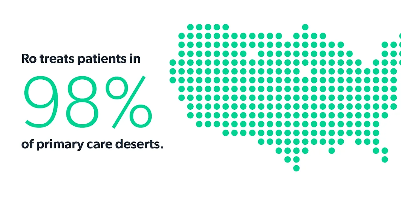 For patients without a primary care provider or access to healthcare, telehealth can be a more accessible, affordable, and approachable entry point into the healthcare system, can alleviate some of the burden on in-person care providers, and can serve as a bridge to in-person care, when that’s needed. Ro treats patients in 98% of primary care deserts and our Online Visits are affordably priced, no insurance required. Ro also treats many stigmatized conditions, like obesity, sexual health, and nicotine addiction, offering a more approachable first touch point for healthcare. Additionally, Ro’s Online Visits are informed by world-class medical protocols and expertise, helping ensure patients have access to high-quality care virtually.