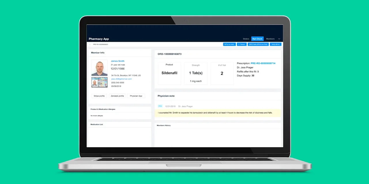 Once a patient’s treatment plan is developed and if medication is prescribed, Ro’s network of pharmacists can review clinical notes about the patient’s health profile. For example, a physician can counsel a patient, create a treatment plan, and then pass additional clinical notes to the patient’s pharmacist to increase context and ultimately improve continuity of care. This visibility into a patient’s health profile, which is not typically found between in-person providers and retail pharmacies, allows the pharmacist to be informed of the patient’s interaction with the provider, the patient’s treatment plan, and adds another layer to flag any issues that may impact a patient’s safety, like drug interactions.