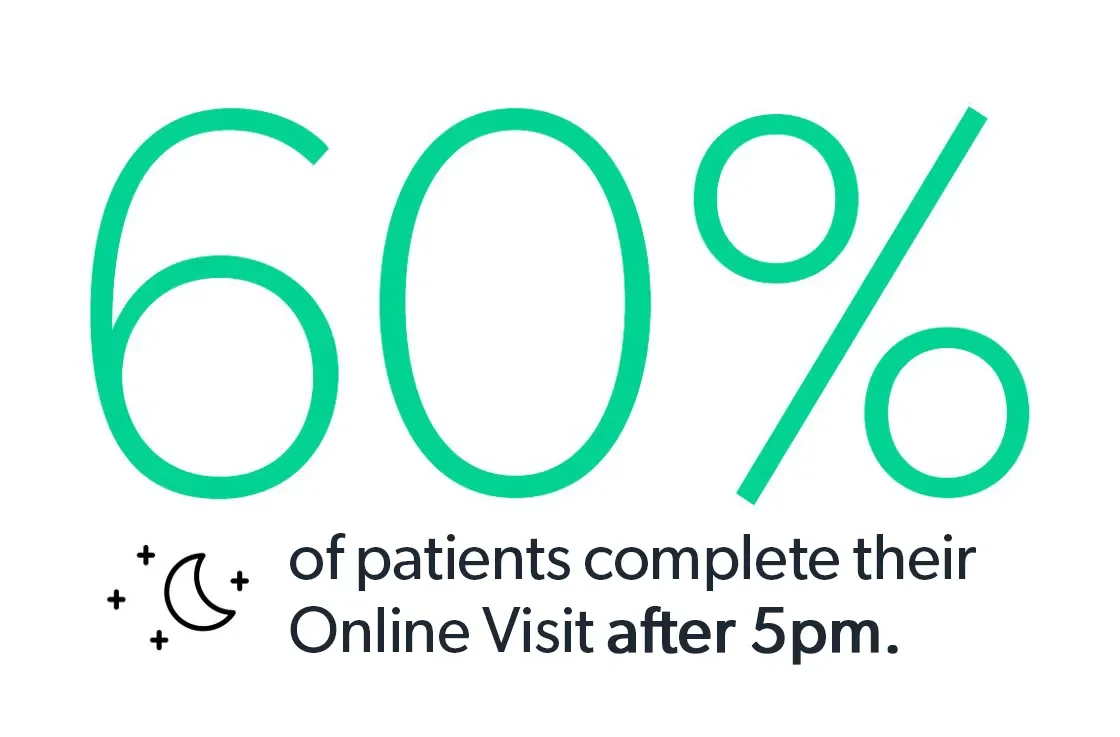 Patients on Ro’s telehealth platform can initiate care 24 hours a day, seven days a week from any location in the U.S., no matter if it’s 1 pm or 1am. In fact, we found that 60% of patients complete an Online Visit on Ro’s platform outside of regular business hours — times when many physicians’ offices aren’t open. Patients using Ro’s platform can complete their Online Visit any time of day and take as long as they need to complete it — without the limit of timed appointments and tight schedules. In addition, a patient can directly message their provider whenever they want (and vice versa) through a secure messaging application on Ro’s platform. Providers are not limited by office hours and can evaluate and connect with patients when it is most convenient for them respectively. This makes communication convenient for patients and providers, removes the burden of arranging appointments to facilitate follow up care, and may encourage more frequent interactions.