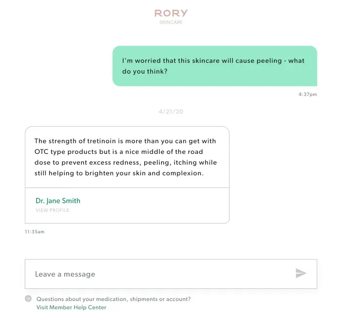 Once the patient-provider relationship is established on Ro’s platform, patients can securely message their provider at any time to discuss their treatment plan. This means that patients can get answers to questions about medication efficacy or side effects, update their providers about changes in their health, or connect about anything else they’d like to discuss. Most patients receive a response within 24 hours, many times sooner, without having to schedule an additional appointment. Ro also has a dedicated Member Experience Team that manages non-medical questions, which allows providers to focus on the questions that require their clinical expertise.
