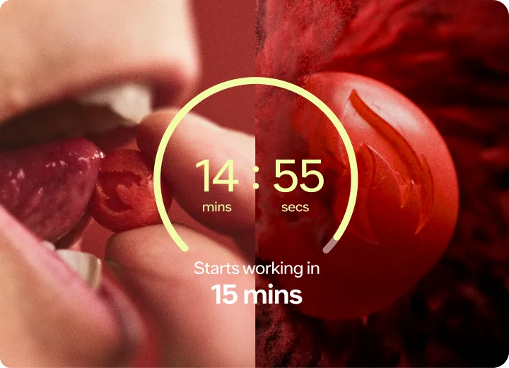 Ro Sparks are a sublingual formulation, meaning they are dissolved under the tongue. ED medications that are sublingual formulations have been shown to work in as little as 15 minutes on average.*