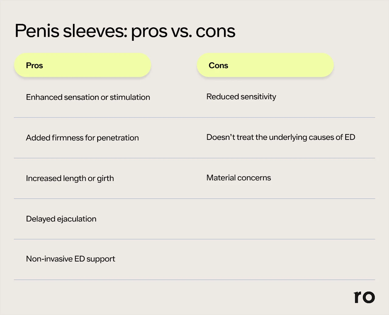Research on penis sleeves for ED is limited, but anecdotal reports suggest the tool can be an effective enhancement to sexual activity, especially when combined with other ED treatments.