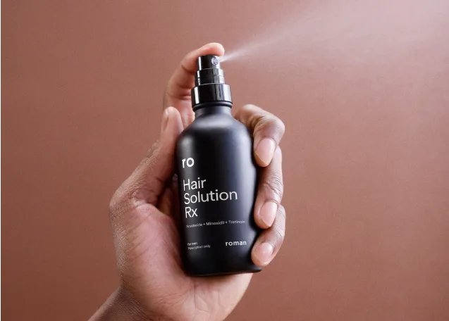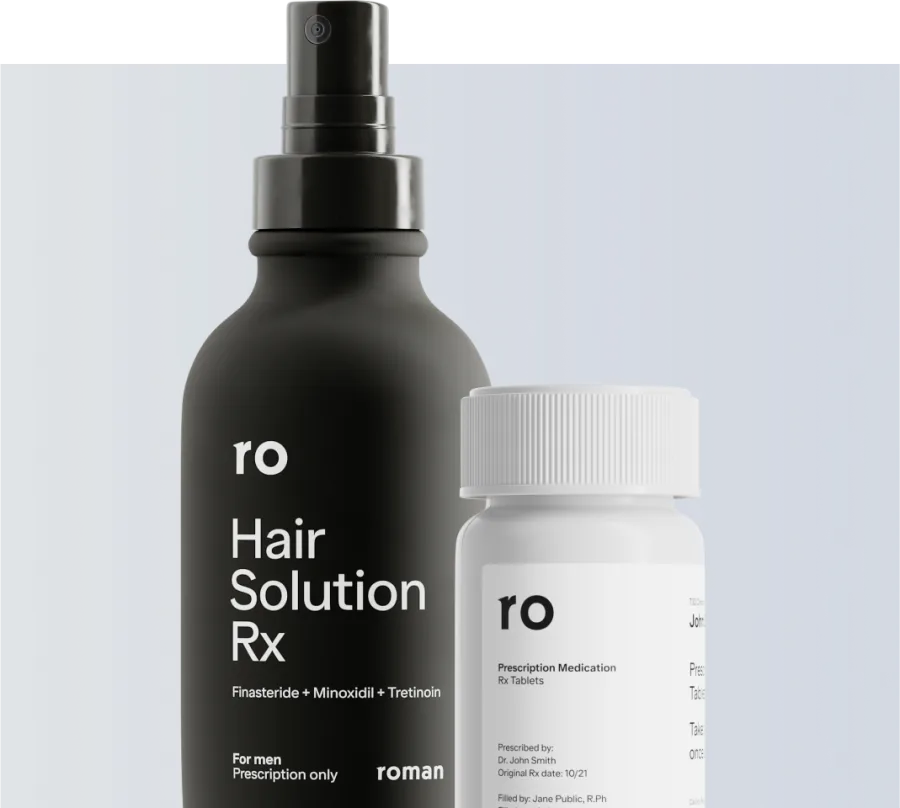 Roman Hair Solution Rx is a compounded prescription medication formulated with finasteride, minoxidil, and tretinoin, applied topically. Oral minoxidil is not FDA approved for hair loss, but healthcare providers may prescribe it for hair loss at their discretion. Oral minoxidil may cause serious side effects that impact the heart, including pericarditis, precardial effusion and tamponade. When tested on animals, minoxidil caused lesions of the heart as well as other adverse heart effects. The significance of these lesions for humans is not clear. See full safety information.