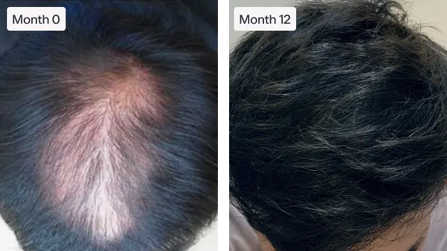 By now, hair loss may have considerably slowed or stopped, and some people may see signs of regrowth (usually at the crown of the head). To maintain results and increase the chance of regrowth, be sure to continue with consistent daily treatment.