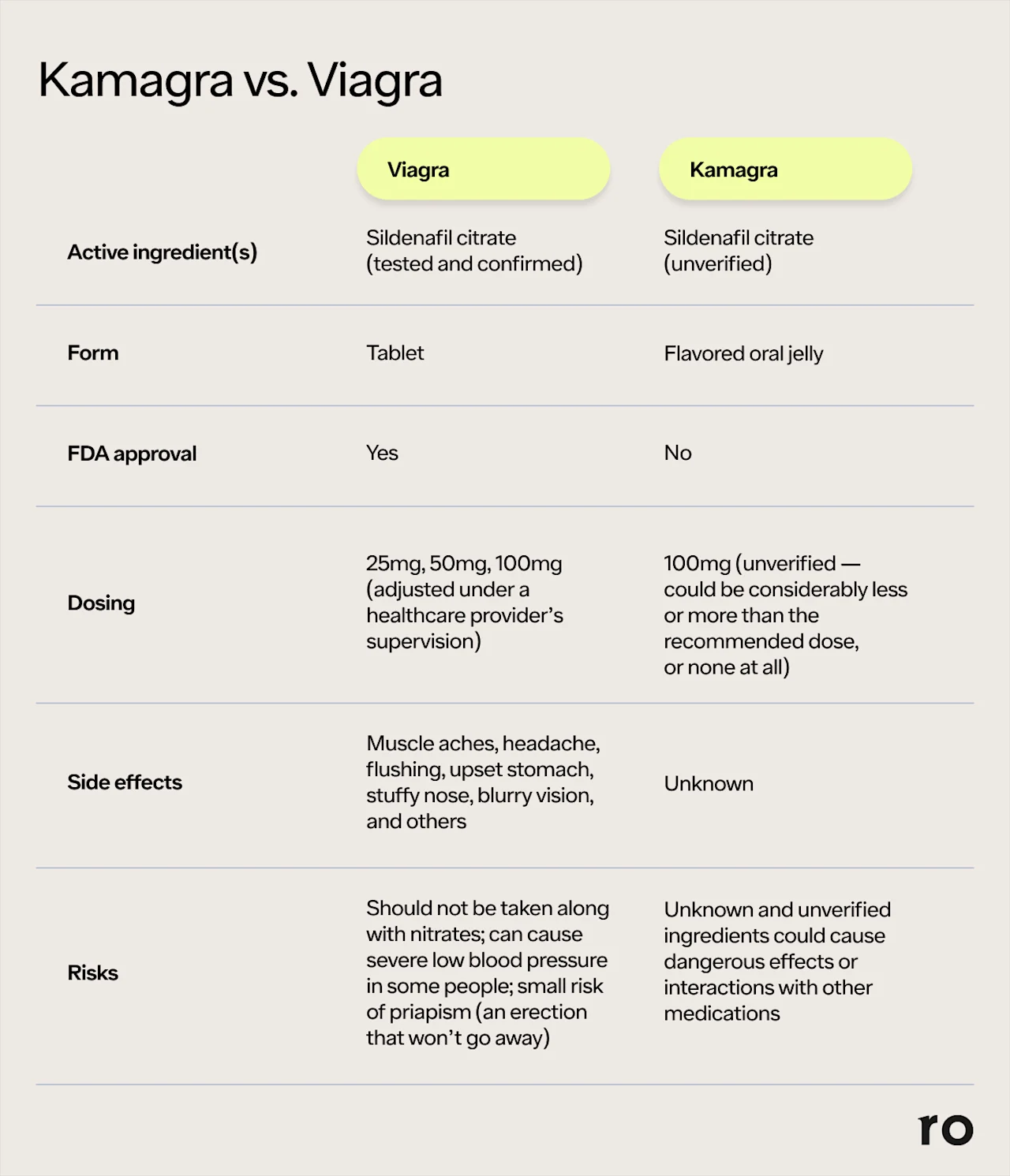 Let's say Kamagra oral jelly does contain sildenafil, as it claims. Even so, there's no way to know what else might be in an unlicensed, unregulated product. Because Kamagra is not approved by the FDA, the only way to obtain the jelly in the US is illegally online or through an unlicensed provider. Here are some of the risks of purchasing and using Kamagra oral jelly (or any unregulated product).