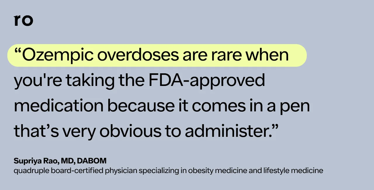 Always double-check your dose before injecting, and consult your healthcare provider if you’re unsure about your dosing instructions. If you take too much Ozempic, call the Poison Help line at 1-800-222-1222.
