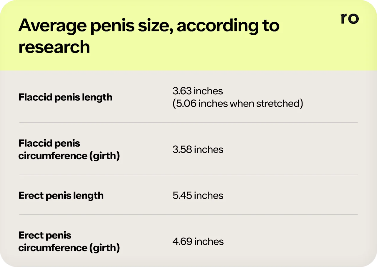 In 2025, researchers looked through 33 studies on penis size, with data on over 36,000 men from around the world. Here’s what they found for average flaccid and erect penis lengths and girths (aka circumference):