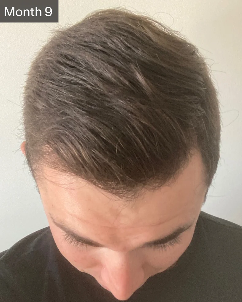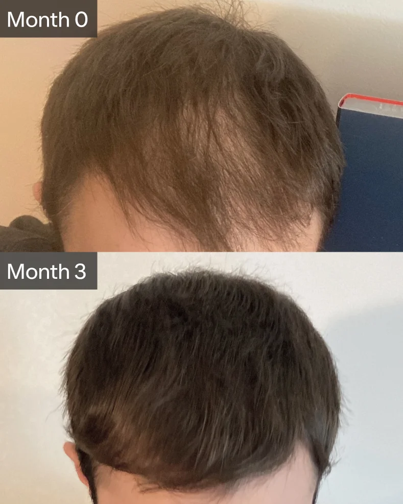 By now, hair loss may have considerably slowed or stopped, and some people may see signs of regrowth (usually at the crown of the head). To maintain results and increase the chance of regrowth, be sure to continue with consistent daily treatment.