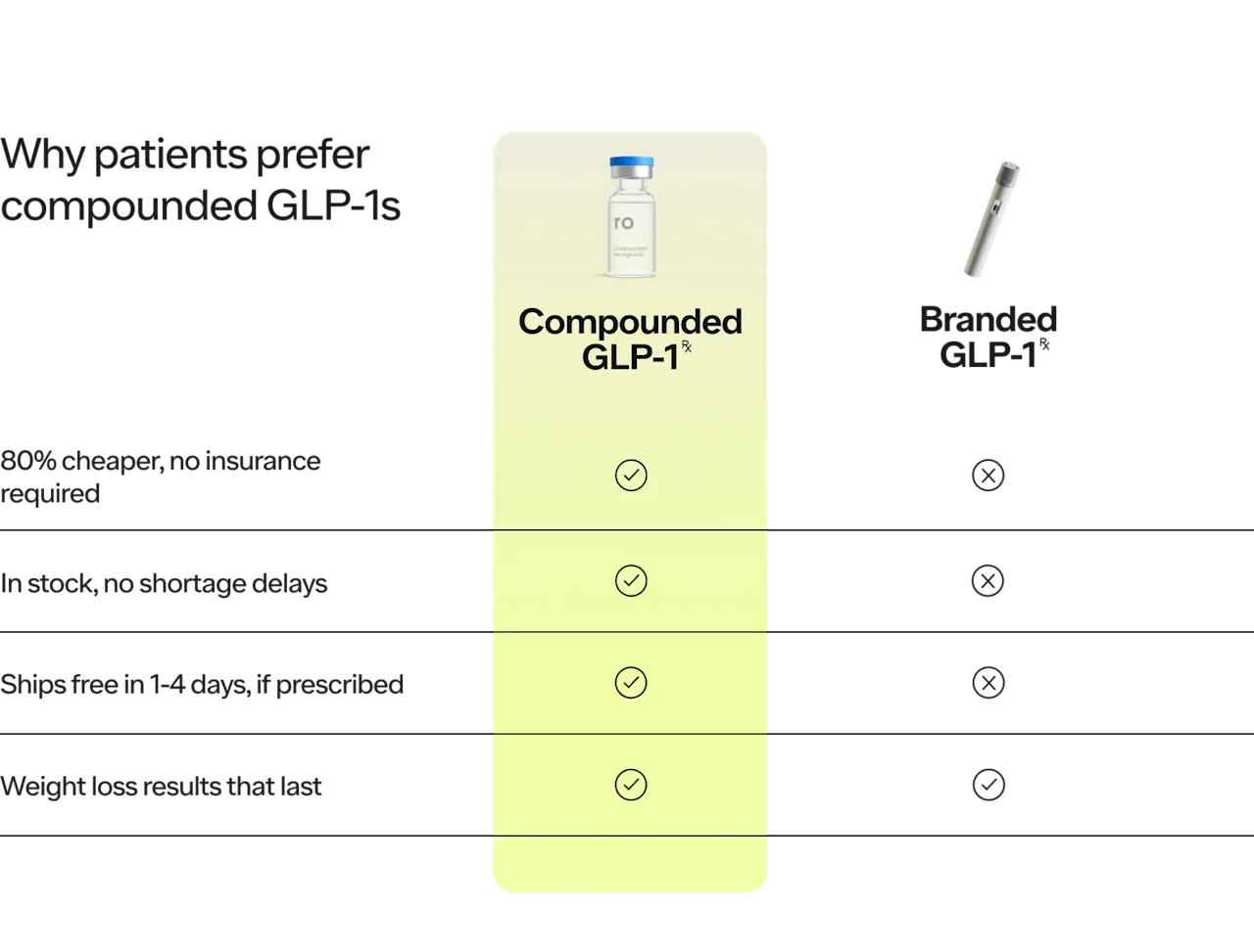 The compounded semaglutide that Ro offers is the same active ingredient as Ozempic and Wegovy. Ro partners with state-licensed compounding pharmacies that are subject to state and federal regulations, and each batch of medication undergoes extensive quality checks.