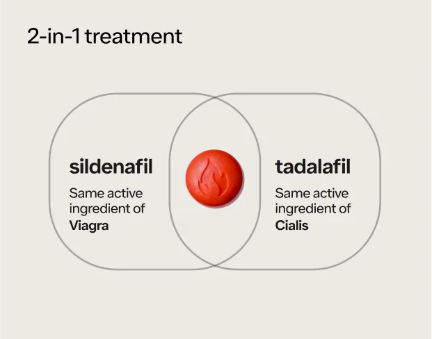 Contains sildenafil and tadalafil (the active ingredients in Viagra and Cialis) in one powerful treatment