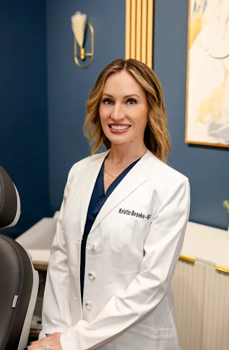 Kristin Beseke, MSN, APRN, FNP-BC, has been a board-certified Family Nurse Practitioner since 2016. She completed her graduate nursing education with a focus on family practice and has pursued advanced training in dermatology, medical aesthetics, and weight management.