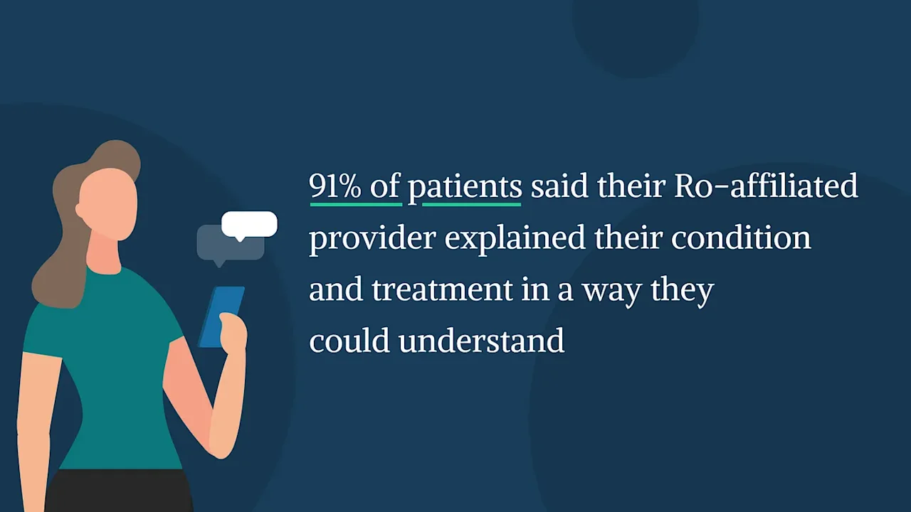A majority of patients felt their needs were met and that Ro-affiliated providers were able to deliver personalized, end-to-end care.