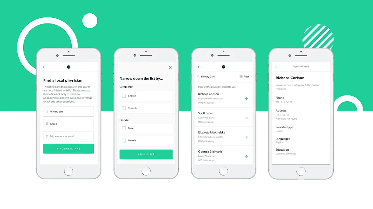 Ro is partnering with Ribbon Health, an innovative healthcare data company, to help seamlessly connect patients to in-person care when and where they need it and promote better continuity of care between telehealth and in-person care. Now, patients can easily find in-person primary and specialty care providers nationwide based on specialty, location, services offered, and accepted insurance directly on Ro’s telehealth platform. Powered by Ribbon Health’s accurate and reliable provider database, Ro-affiliated providers can seamlessly make a recommendation for patients when they are better served by others and help them navigate the already challenging healthcare system to find the best in-person care for them.