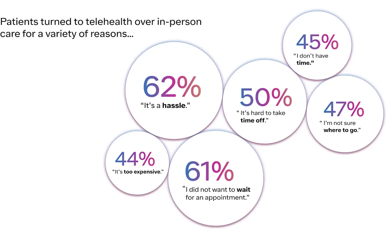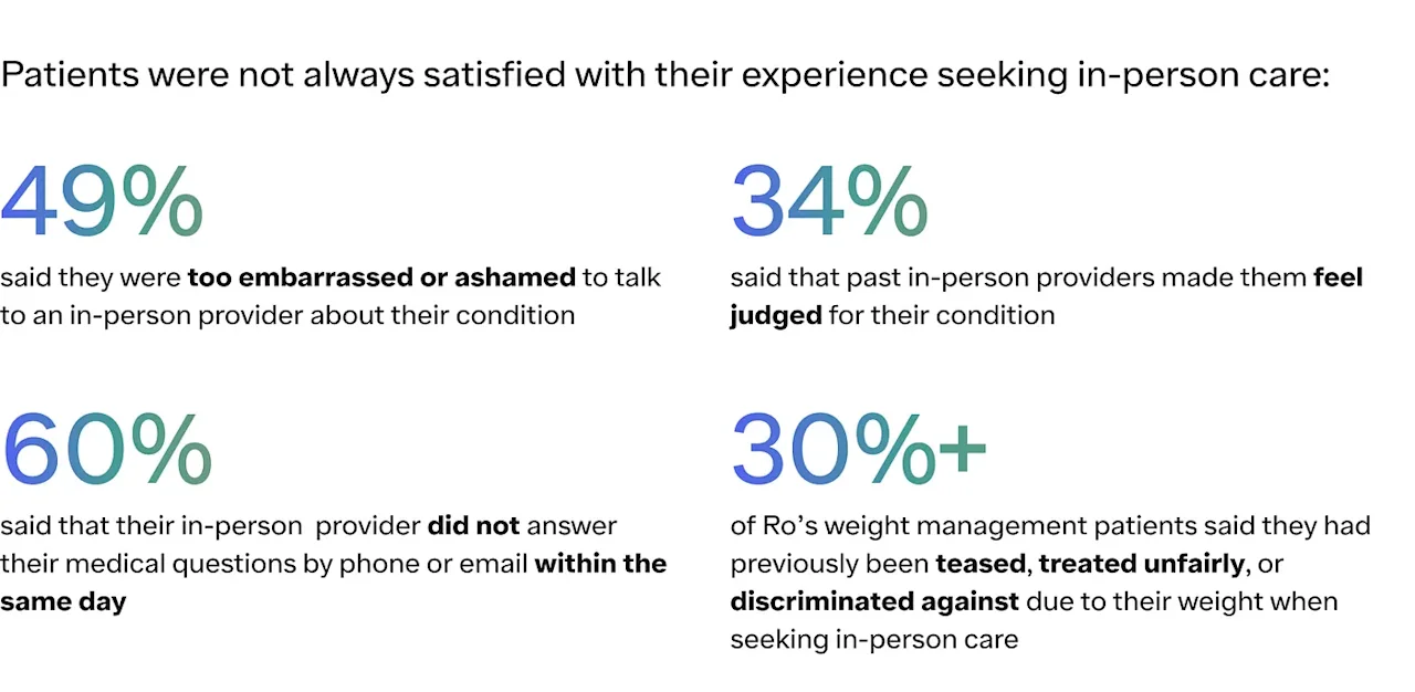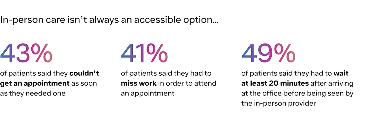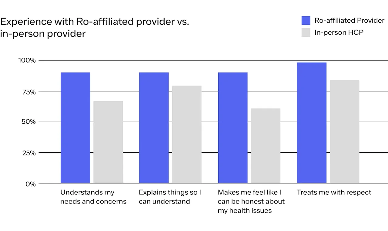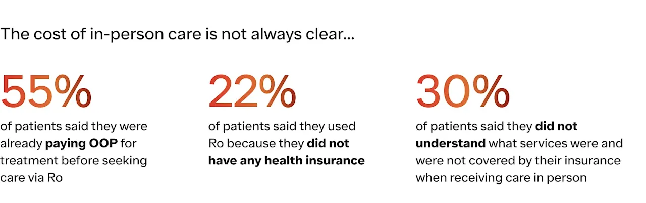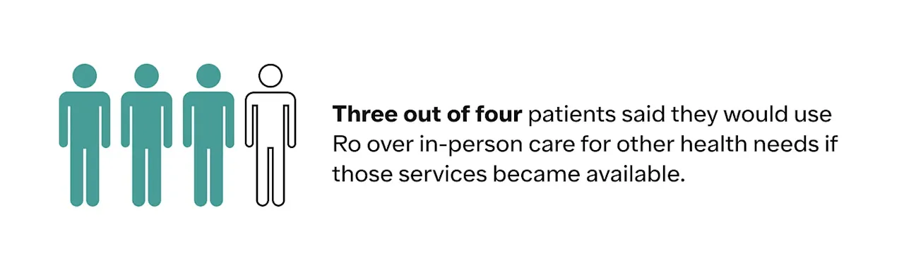Improving access to care is the first step toward helping more patients achieve their goals. Ro’s platform uses technology to enable more convenient access to high-quality care by removing barriers that have long limited patients, including high costs, long commutes to a doctor’s office or pharmacy, limited hours, provider shortages, care deserts, and more. In the survey, our patients indicated that ease of access is an important factor in how they perceive their healthcare experience and in selecting whether to seek care in-person or via telehealth.