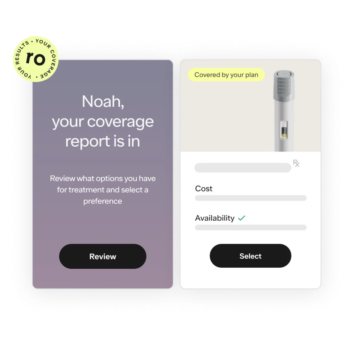 When a patient wants to use insurance, Ro takes on benefits verification and clearly communicates their treatment options, coverage details, and transparent cost estimates when available.