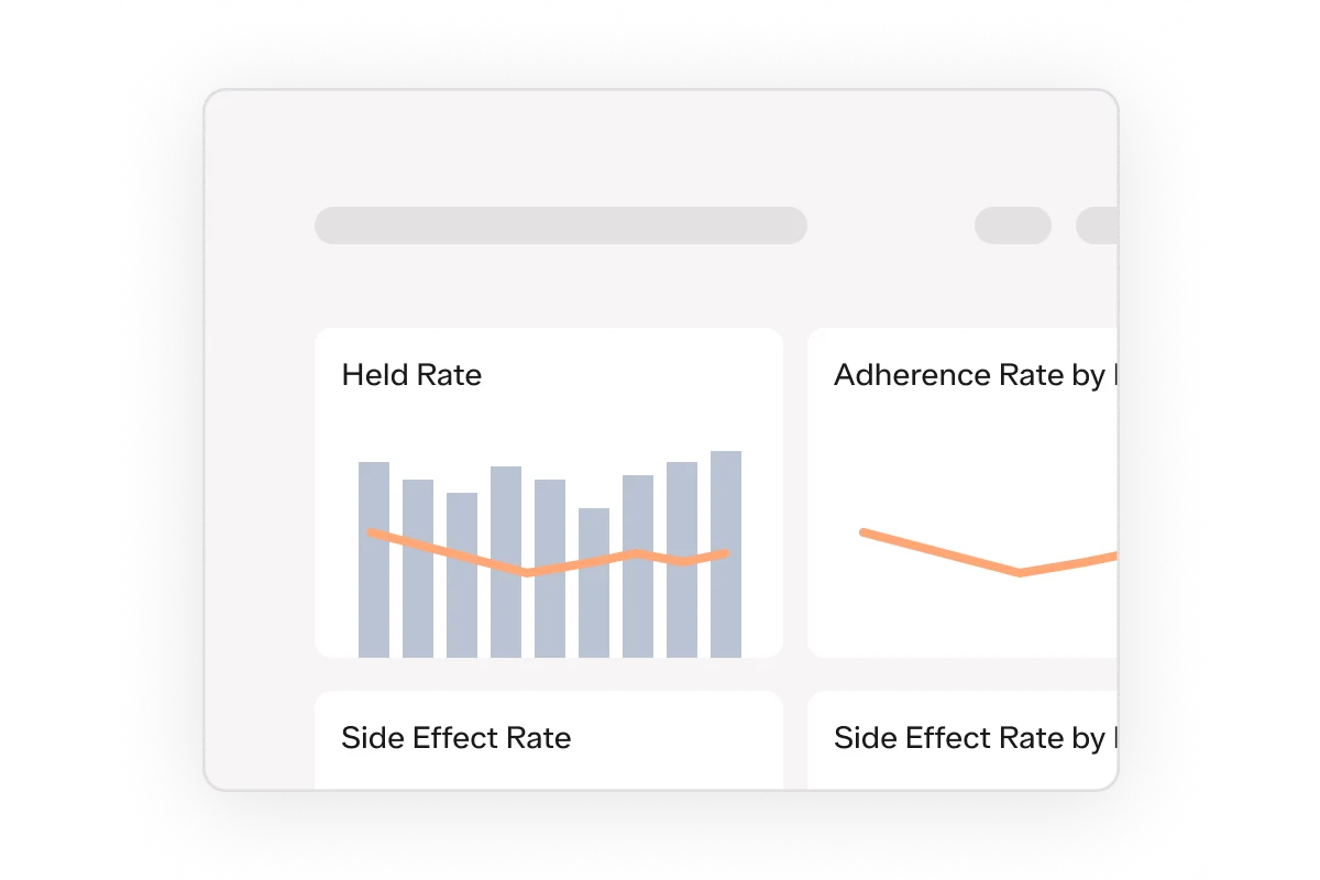 Easy and accessible check-in visits make it frictionless for patients to report side effects whenever they may occur. Plus, these automated and structured check-ins support greater collection, analysis, and response to side effects – supporting better treatment adherence and outcomes.