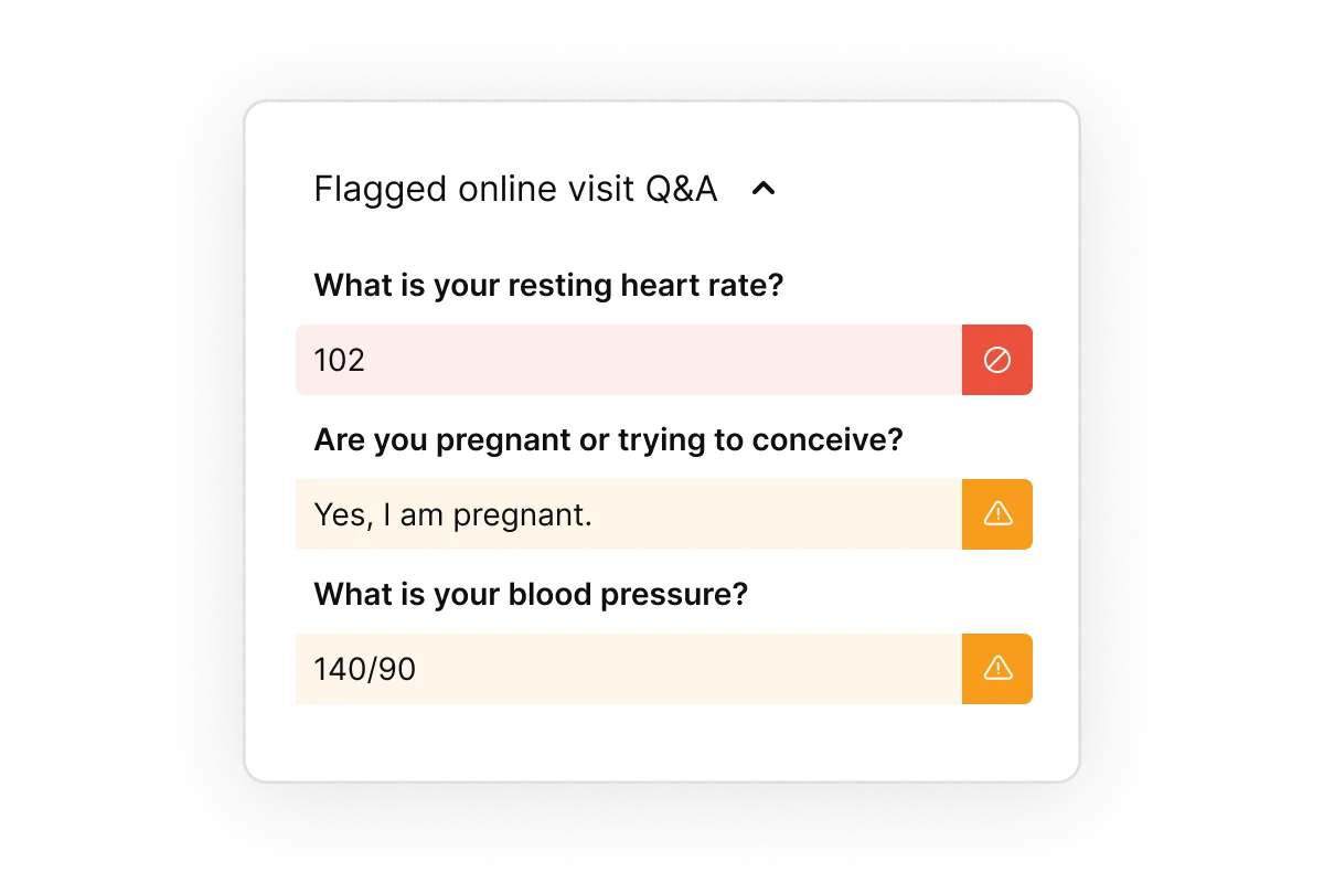 Patients’ responses in intake visits and check-ins are coded and labeled so providers are consistently aware of any potential risks while reviewing their individual medical history.