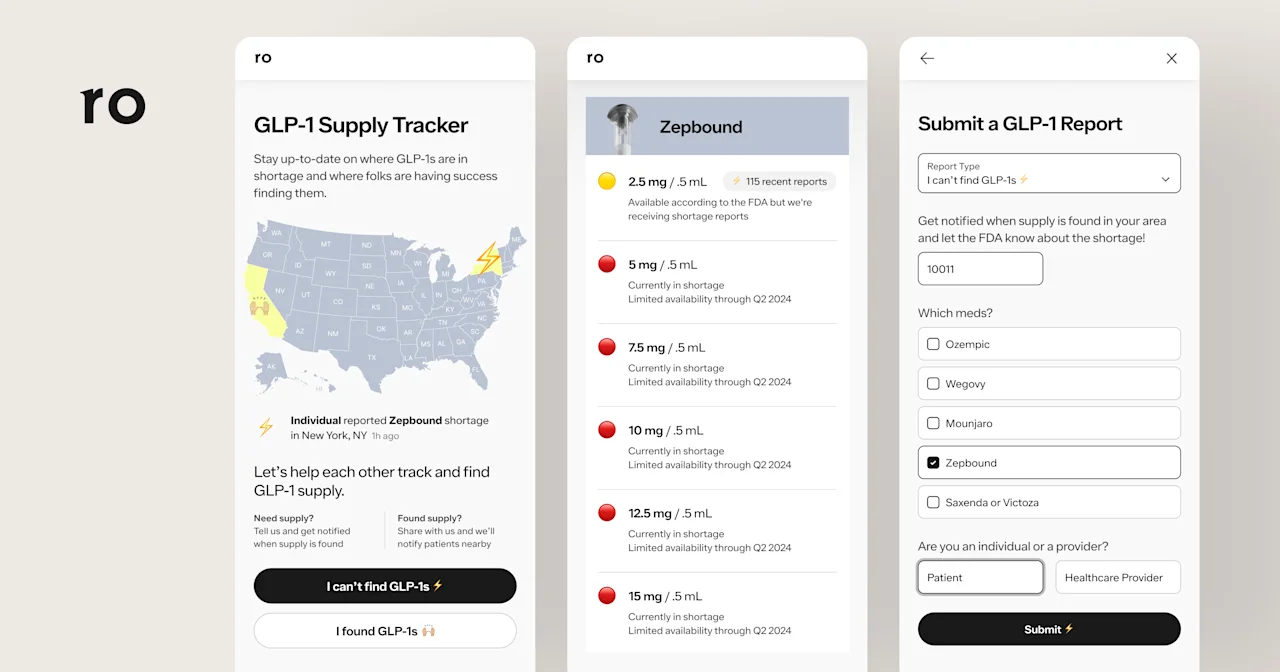 Over the last few weekends, a few Ro’ers built a GLP1 Supply Tracker to fill the gap that our patients and providers are currently struggling with -- finding out which GLP1s are available (and where) and which aren’t. We originally started building this tool exclusively for our own patients. We always prioritize building for Ro patients, they are paying us for their health care and deserve our singular focus. But, the more we thought about it, the more we realized that the tool works better for all patients (Ro and non-Ro patients) the greater the number of people that have access to it.