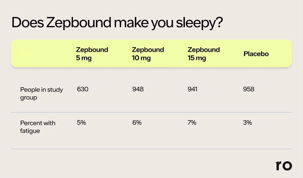 In clinical trials, 5% of people taking 5 mg of Zepbound, 6% of people taking 10 mg, and 7% of people taking 15 mg reported fatigue. In comparison, only 3% of those taking a placebo experienced this side effect.