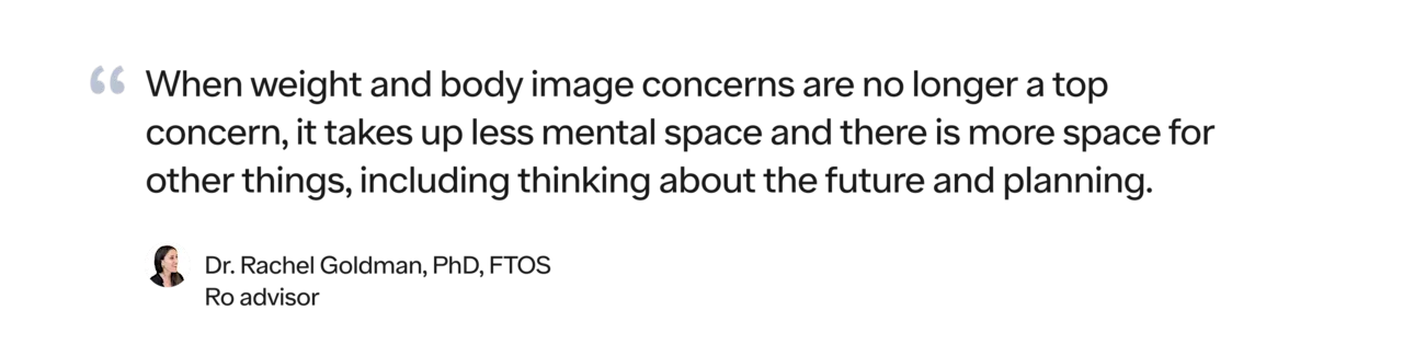 GLP-1 medications may have serious side effects. See Important Safety Information, including Boxed Warning, at ro.co/safety-info/glp1.