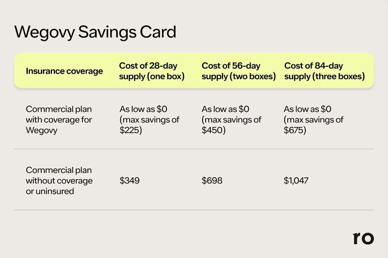 Here’s a quick recap of the savings available with the Wegovy Savings Card, depending on your insurance coverage.