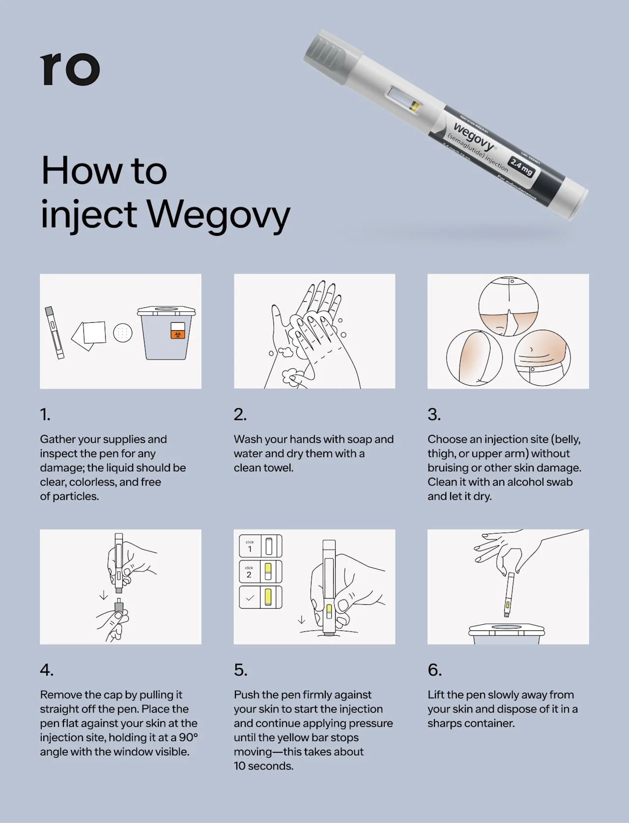 WeGoTogether. (2024). Tips for using your Wegovy pen. Retrieved from https://www.wegovy.com/dashboard/my-library/week-01-using-the-wegovy-pen.html