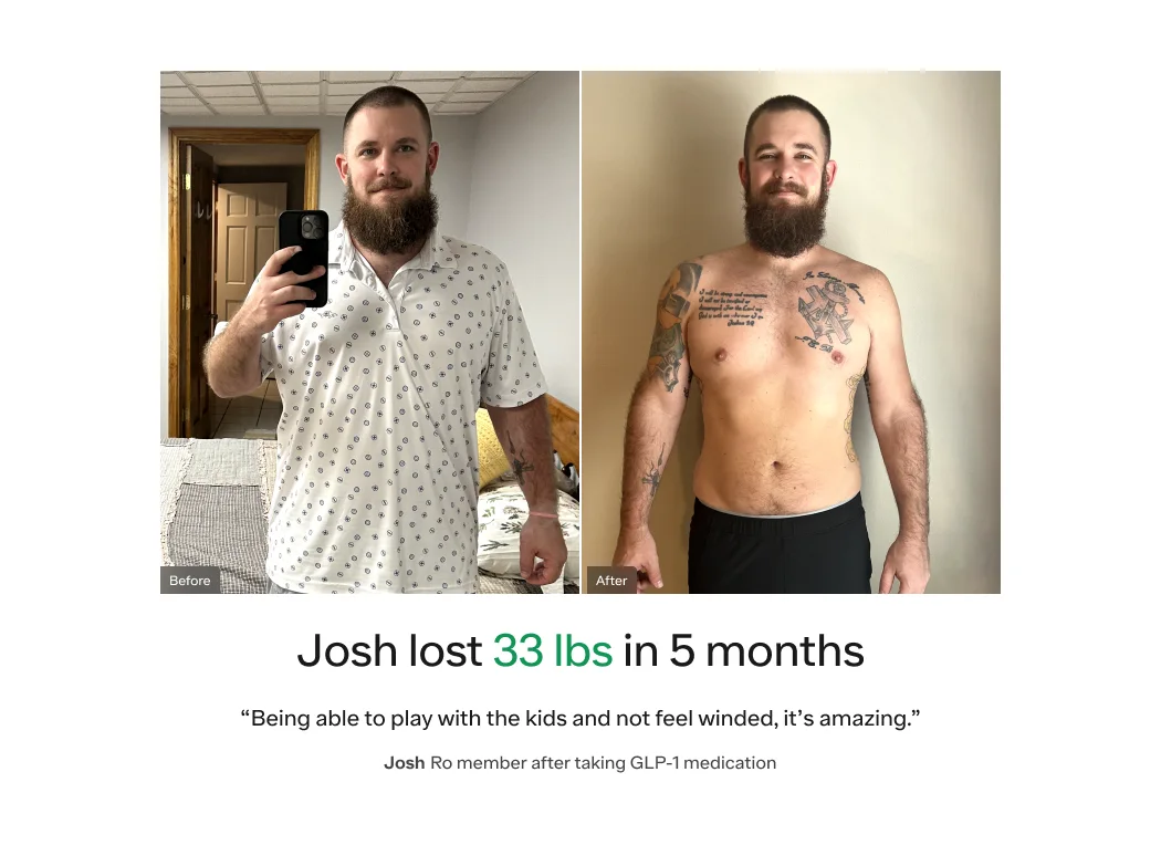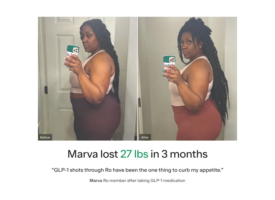 If you’re considering treatment with GLP-1 medications like Ozempic or Wegovy, speak to a licensed healthcare professional through the Ro Body program, which can help you get on track for your weight loss journey.