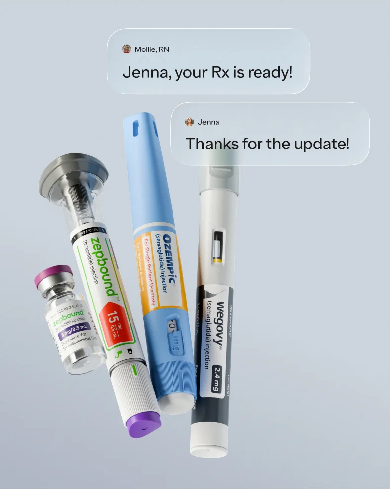 Costs vary based on the specific medication and dose, and whether you’re using insurance or paying out-of-pocket. If using insurance, our insurance concierge helps fight for coverage and, if covered, your cost will be a copay. If paying out-of-pocket Ro has cash pay options available starting at $349/month.
