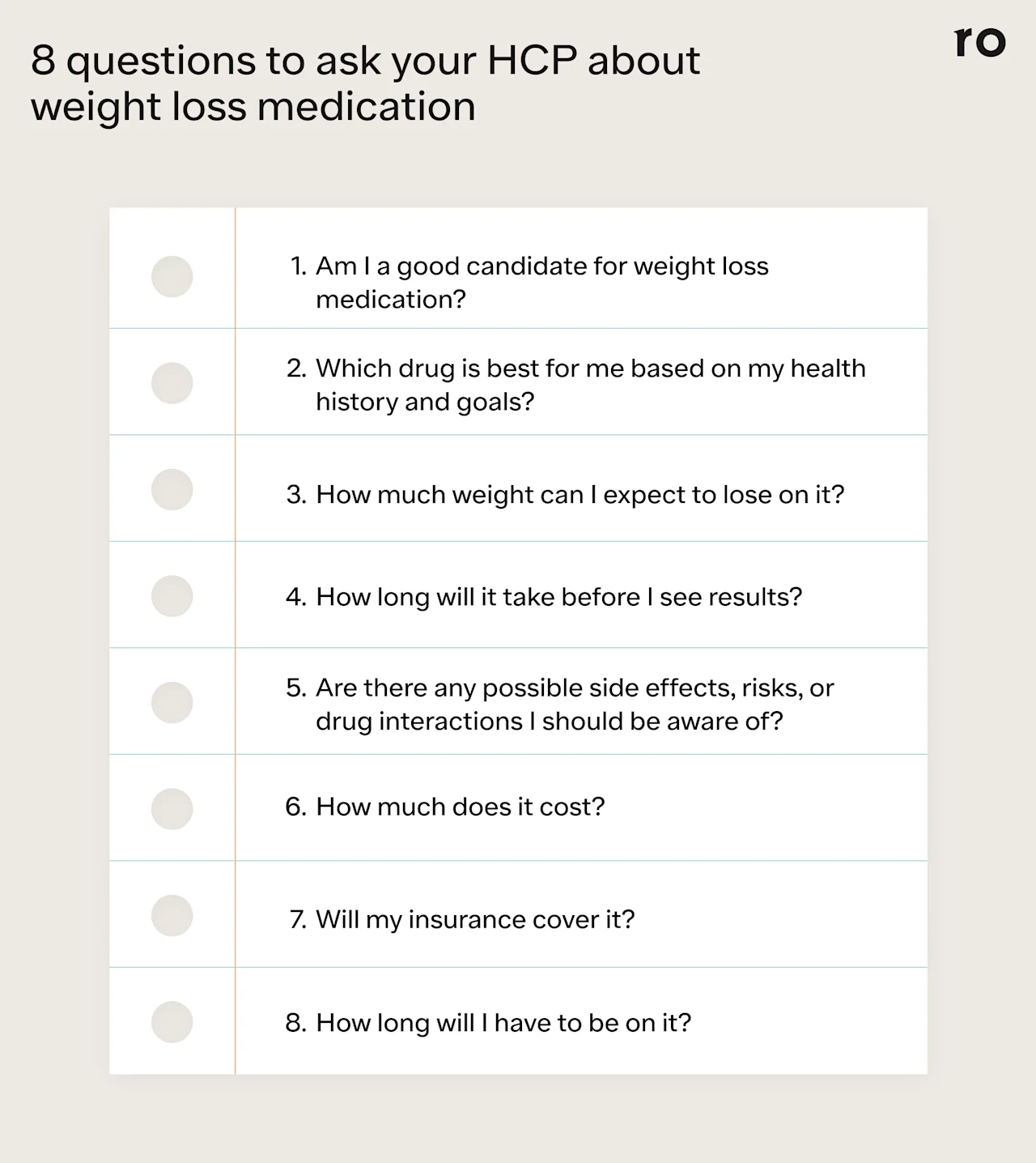 Here are some questions to ask your healthcare provider if you're interested in trying a weight loss medication:
