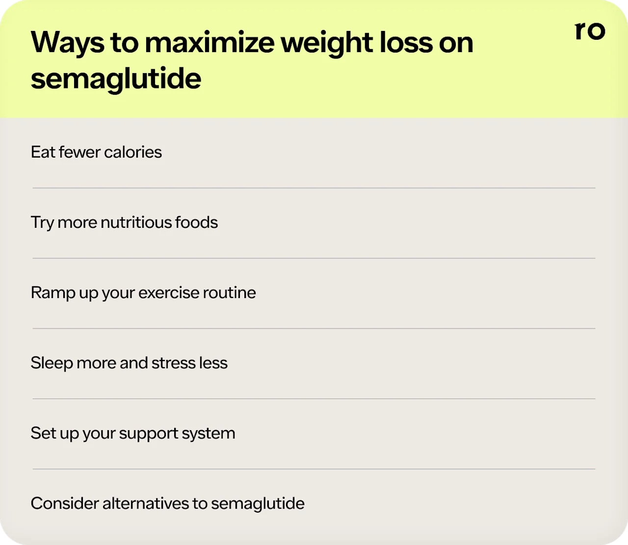 Making small adjustments to adopt healthy habits — like improving your diet, increasing your movement, and managing your sleep and stress — can help maximize semaglutide’s effectiveness.