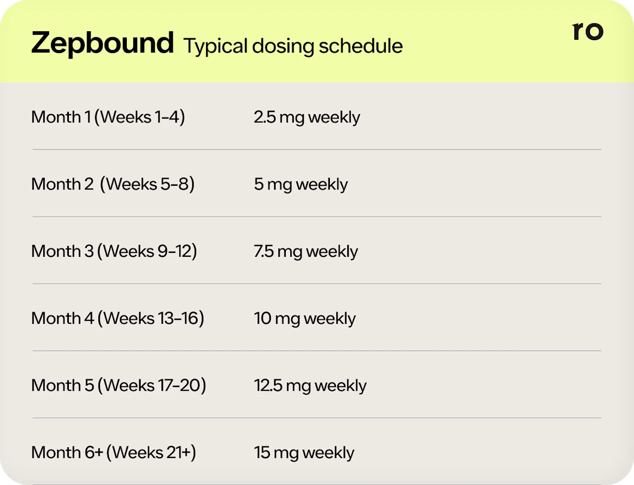 After the first two months of Zepbound, your healthcare provider may increase your dose again — first to 7.5 mg weekly. Or, on the flip side, your healthcare provider may slow titration to see if you can continue losing weight on a lower dose while also making more changes to your diet and exercise routine.