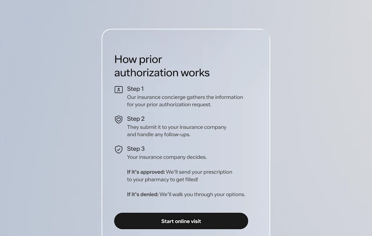 The Prior Authorization Details Page lives inside each patient's Ro account and is available as soon as a PA request kicks off. This page walks patients through their status, timeline, and options. We also surface when relevant information becomes available through push notifications and Ro’s Help Center to keep patients informed, wherever they are in the process—all without needing to message Ro’s care team.