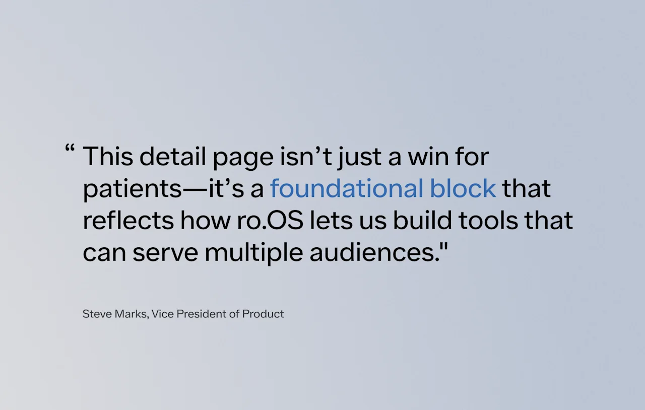 “This detail page isn’t just a win for patients—it’s a foundational block that reflects how ro.OS lets us build tools that can serve multiple audiences. The same underlying data processing that powers our internal workflows, like task statuses, activity logs, and benefits verification updates, also drives what patients see. That means patients get updates about their care progress as soon as we do, powered by the exact same source of truth that our care teams use.