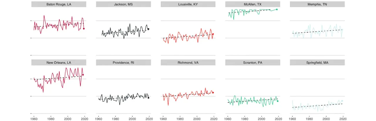 The Asthma and Allergy Foundation of America identified the top ten worst cities for allergy sufferers in 2019. We honed in on these cities and looked into how temperatures are changing over time.
