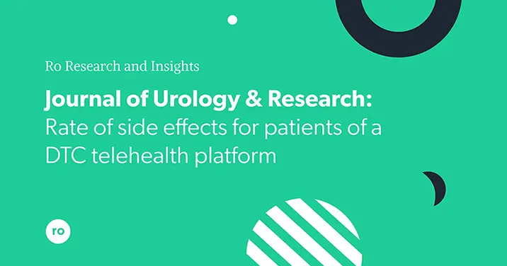 In a study published in the Journal of Urology & Research, Ro’s Research Team, including Dr. Meylnda Barnes, MD, SVP of Medical Affairs and Research at Ro, and Dr. Michael Eisenberg, Associate Professor of Urology at Stanford University and Medical Advisor at Ro, and me, evaluated one potential indicator of patient safety: unprompted reports of medication side effects by patients.