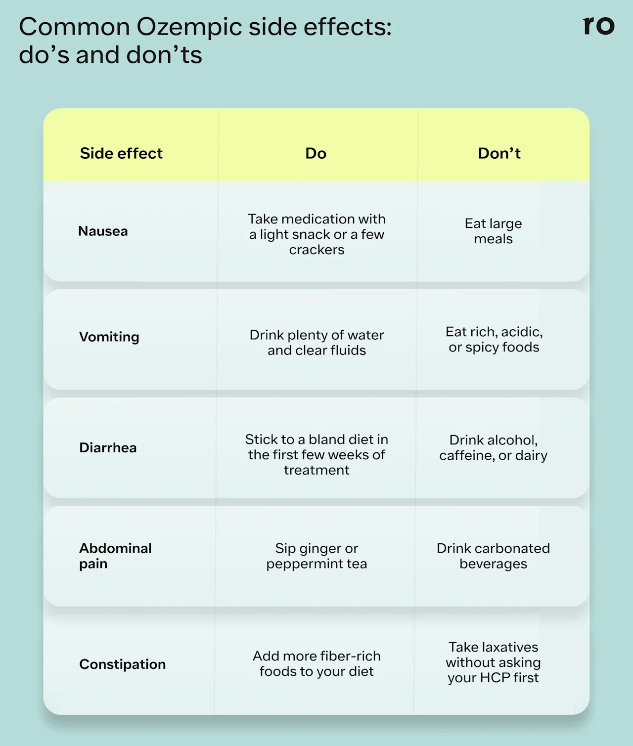 If you’re just getting started on Ozempic, try these tips to help minimize your risk for common side effects: